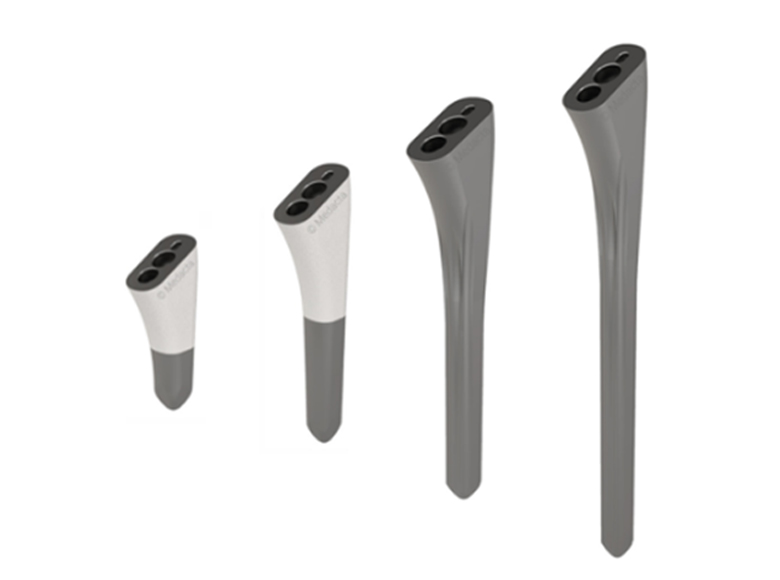 The humeral diaphysis has a self-centering and self-orienting shape. The calcar design has been optimize, through extensive trialing using 3D imaging and cadaver analysis, and delivers enhanced primary stability. Achieving a precise fit between stem and humeral canal is made possible with the extensive size range available with this system.